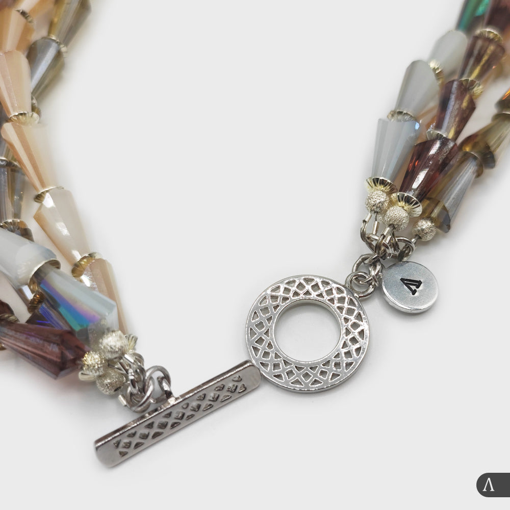 - Collana modello "choker" chiusura a Tbar, infilata su cavo in acciaio