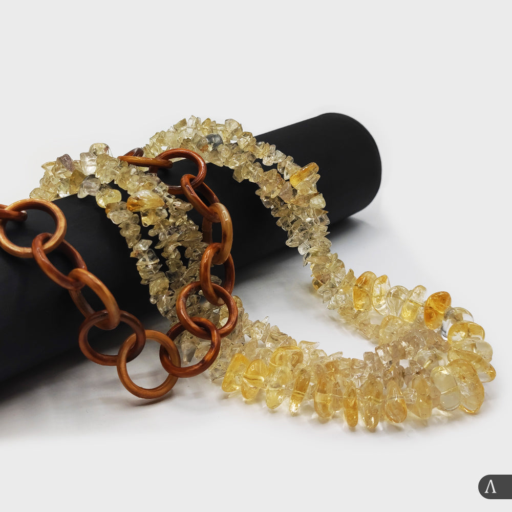 Collana donna in chips di Quarzo Citrino e Corno* naturale