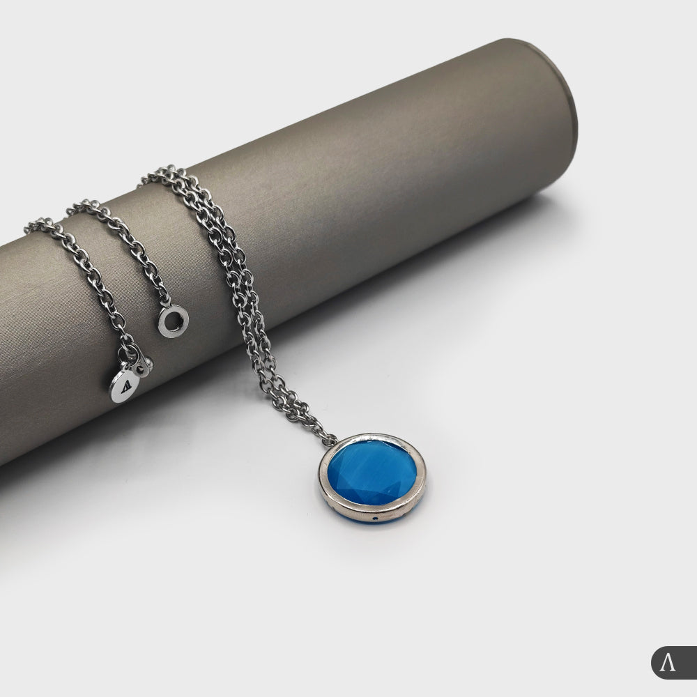 Collana donna in acciaio e ciondolo in occhio di gatto